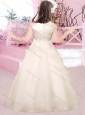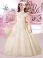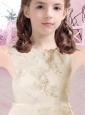 Beautiful Bateau Satin and Tulle Flower Girl Dress with Appliques