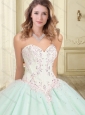 Beautiful Beaded and Applique Sweetheart Perfect Quinceanera Dresses in Apple Green