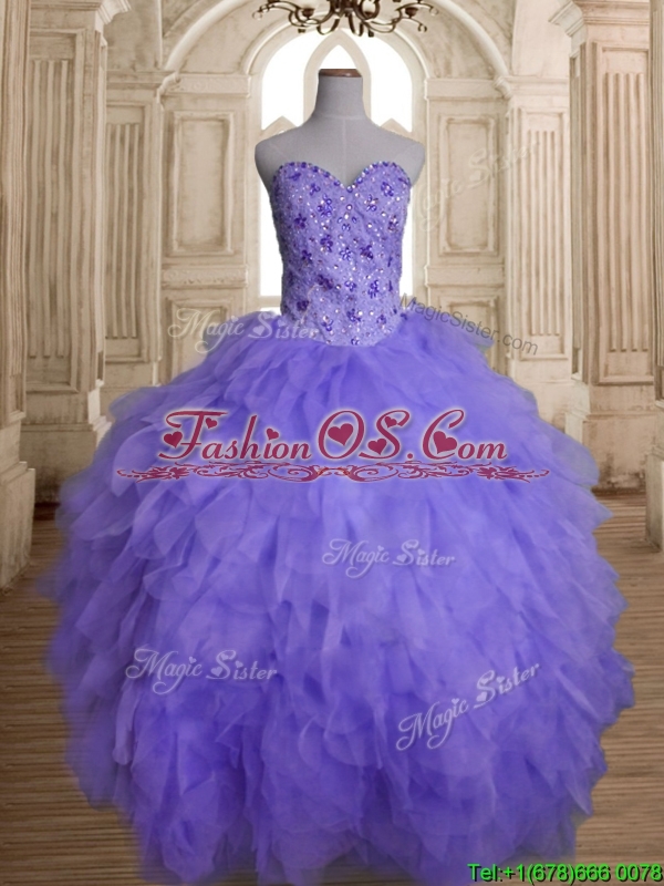 Beautiful Beaded and Ruffled Big Puffy Quinceanera Dress in Lavender