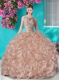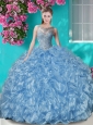 Beautiful Beaded and Ruffled Quinceanera Dress with See Through Scoop
