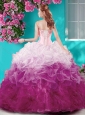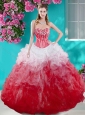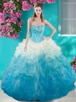 Beautiful Beaded Bust White and Blue 15 Quinceanera Dress in Organza