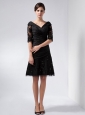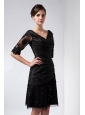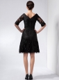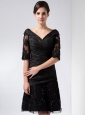 Beautiful Black Column Mother Of The Bride Dress V-neck Knee-length Taffeta and Tulle Beading and Lace
