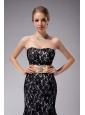 Beautiful Black Column Strapless Mother Of The Bride Dress Lace Sash Floor-length