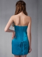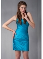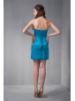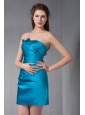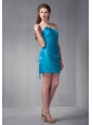 Beautiful Blue Column Strapless Ruch Bridesmaid Dress Mini-length Taffeta