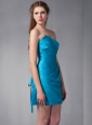 Home >  Bridesmaid Dresses >  Cheap Bridesmaid Dresses > Beautiful Blue Column Strapless Ruch Bridesmaid Dress Mini-length Taffeta