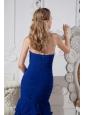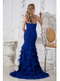 Beautiful Blue Mermaid Ruffled Prom Dress Sweetheart Brush Train Chiffon Beading
