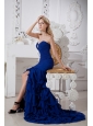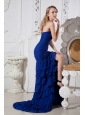 Home >  Prom Dresses >  Beautiful Prom Dresses > Beautiful Blue Mermaid Ruffled Prom Dress Sweetheart Brush Train Chiffon Beading