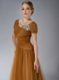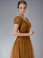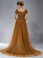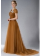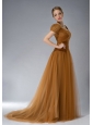 Home >  Special Occasion Dresses >  Mother of the Bride Dresses > Beautiful Brown Empire Square Mother Of The Bride Dress Brush Train Tulle Appliques