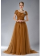 Beautiful Brown Empire Square Mother Of The Bride Dress Brush Train Tulle Appliques