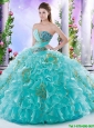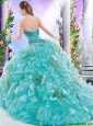 Beautiful Brush Train Quinceanera Gowns with Ruffles and Beading
