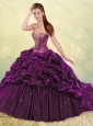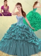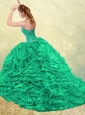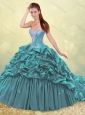 Beautiful Brush Train Teal Quinceanera Dress with Beading and Bubbles