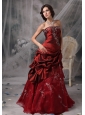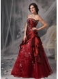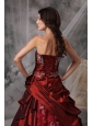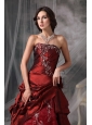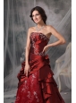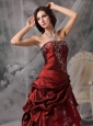 Beautiful Burgundy A-Line / Princess Strapless Quinceanera Dress Taffeta Appliques Floor-length