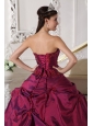 Home >  Quinceanera Dresses >  Sweet 16 Dresses > Beautiful Burgundy Quinceanera Dress Sweetheart Taffeta Appilques Ball Gown