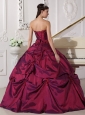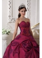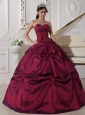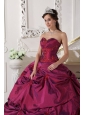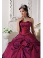 Beautiful Burgundy Quinceanera Dress Sweetheart Taffeta Appilques Ball Gown