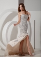 Home >  Evening Dresses > Beautiful Champagne Mermaid Sweetheart Evening Dress Chiffon Rhinestones Brush Train