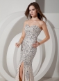 Dramatic details and a slim silhouette give this long formal dress a celebrity style that is sure to turn heads at your prom or black tie event. It features a strapless bodice with a sweetheart neckline and is heavily decorated with exquisite beadings. A seductive side slit lets you glide across the dance floor with ease.