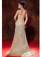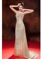 Beautiful Champagne Prom Dress Sweetheart Brush Train Sequin Empire