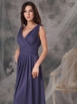 Beautiful Cheap Bridesmaid Dress Empire V-neck Chiffon Ruched Floor-length