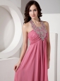 Beautiful Cheap Halter Top Chiffon Prom Dress with Beading