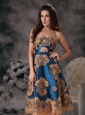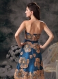 A beautiful back is one of the most seductive parts of a woman's body.A seductive half- open back gown features a printing neckline with satin fabric. A coordinating waist sash adds interest and detail to the mid-section of the dress.Simple zipper up back finishes the look.