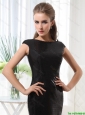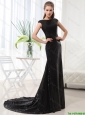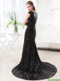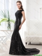 Beautiful Column Bateau Brush Train Sequins Prom Dresses in Black 2016