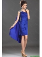 Beautiful Column One Shoulder Blue Prom Dresses with Beading
