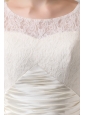 Beautiful Column Scoop Court Train Satin Lace Wedding Dress