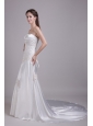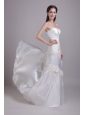 Beautiful Column / Sheath Strapless Brush Train Elastic Woven Satin Lace wedding Dress