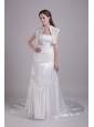 Home >  Wedding Dresses >  Affordable Wedding Dresses > Beautiful Column / Sheath Strapless Brush Train Elastic Woven Satin Lace wedding Dress