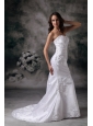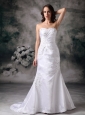 Beautiful Column Sweetheart Wedding Dress Satin Appliques Court Train