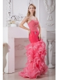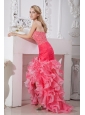 Home >  Prom Dresses >  Best Prom Dresses > Beautiful Coral Red and Light Pink Mermaid High-low Prom Dress with Beading