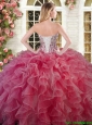 Beautiful Coral Red Big Puffy Quinceanera Dress with Ruffles and Beading