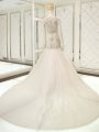 Beautiful Court Train Mermaid Wedding Gown White V-neck Tulle Sleeveless Side Zipper