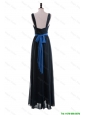 Beautiful Custom Made Empire Straps Prom Dresses with Ribbons in Navy Blue