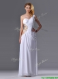Beautiful Cut Out Waist One Shoulder White Prom Dress with Beading