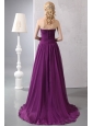 Beautiful Dark Purple Empire Strapless Homecoming Dress Brush Train Chiffon Beading