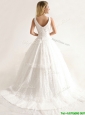 Beautiful Deep V Neckline Wedding Dresses with Beading and Lace
