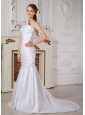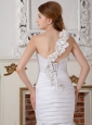 Beautiful Detachable Mermaid One Shoulder Ruch Wedding Dress Brush Train Satin