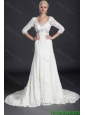 Beautiful Empire Lace White Long Wedding Dresses with Court Train for 2016