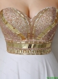 Beautiful Empire Sequined White Prom Dresses with Beading