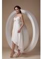 Sassy and stunning are the two words coming in your mind when you see this white prom dress at your first sight. The dainty bodice adorned with two spaghetti straps, subdued ruchings, and exquisite rhinestone decoration, which shows your natural waistline obviously. The high-low stylish chiffon skirt is soft and elegant that flows freely to flatter most figures. A zipper up in the back completes this glamorous design.