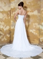 Beautiful Empire Straps Chapel Train Elastic Woven Satin and Chiffon Beading Wedding Dress