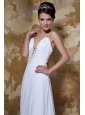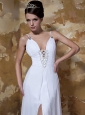 Showcase your sexy and feminine beauty perfectly on your special day when you walk down the aisle in this avant-garde styling Chiffon gown. The luxurious fit and flare wedding dress with glamorous beaded spaghetti straps and an alluring plugged V-neckline adorned by a magnificent crystal beaded brooch. The ruched empire waist adds to its fullness and drama. A soft and flowing A-line skirt with a splendid sweep train is a focal point all its own. Finished with zipper closure.