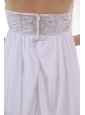 Strapless dresses are one of the sexier styles on the market today. They show just enough skin to be classy without being too revealing. This one features a lovely sweetheart neckline at the top that adds lots of appliques detail. The amazing draped A-line skirt is made from soft material. The dress with chapel train on the back sways beautifully across the floor when you move, as if you're floating on air. A hidden zipper makes for easy off and on and secures the dress in place.