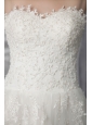 This chraming wedding dress features stapless with sweetheart neckline, the outlayer tulle lace makes the dress perfectly.This dress is for anyone who persue unique and grace. It has an elegent lace up closure.