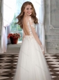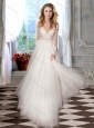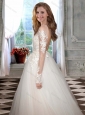 Beautiful Empire V Neck Tulle Long Lace Wedding Dress with Long Sleeves