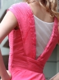 An gorgeous graceful prom gown features with wide straps encrusted with on it, a wraped style clearly shows your feminine or girly beauty.The V-neckline and the semitransparent tulle on the back makes the dress looks sexy.A ruched band decorates the back waistline.A empire skirt achieve the feeling of soft and smooth. The dress is fitable for any soccial occasion.