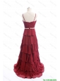 Beautiful Exclusive Brush Train Belt and Ruffled Layers Prom Dresses in Wine Red