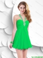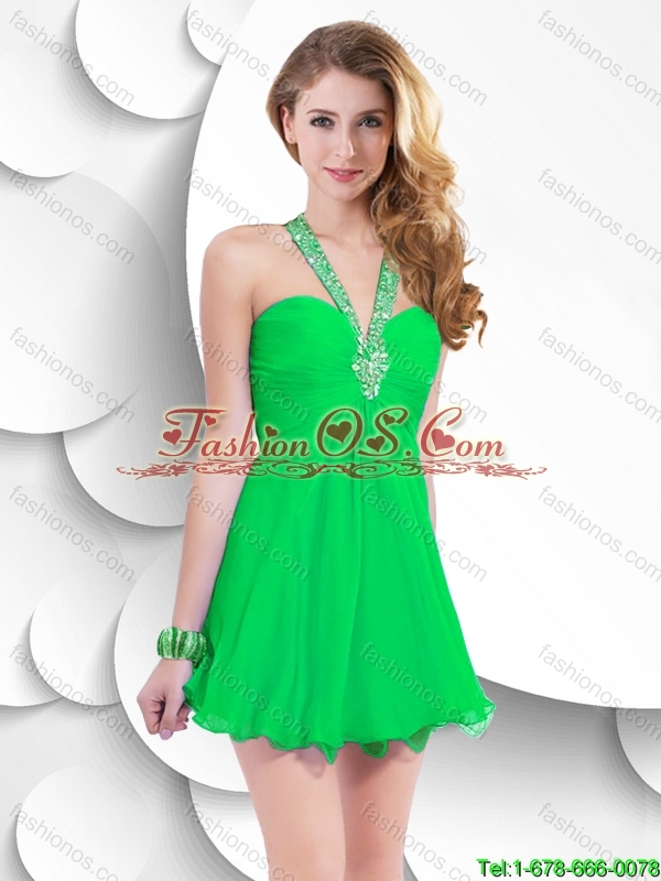 Beautiful Fashionable Fashionable Beaded Green Short Prom Gowns with Halter