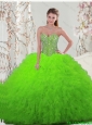 Beautiful Floor 2016 Summer Length Beaded Detachable Quinceanera Gowns in Spring Green